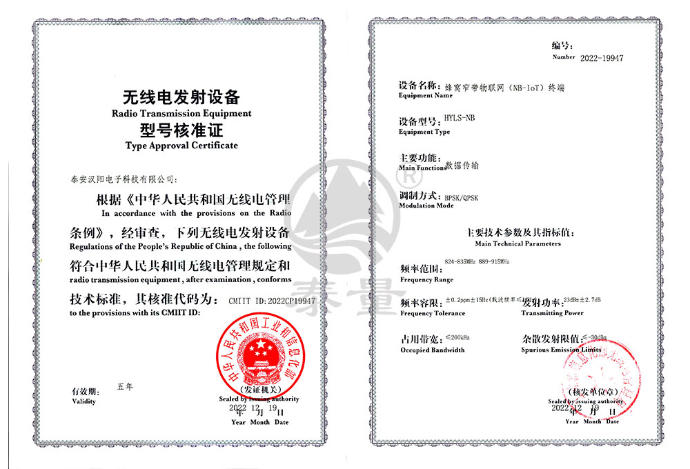 無線電發(fā)射設(shè)備型號核準(zhǔn)證