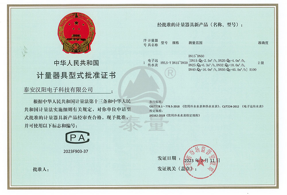 電子遠(yuǎn)傳水表型式批準(zhǔn)-2023-7