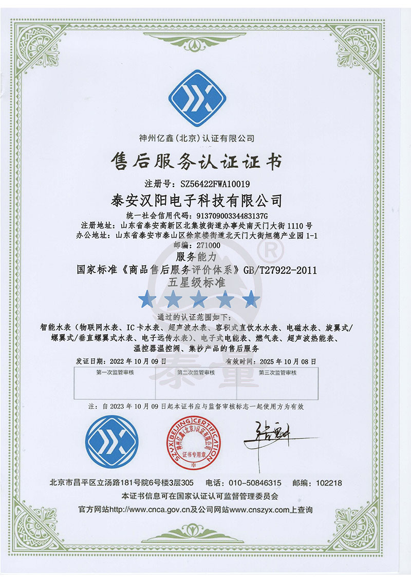 售后服務認證證書